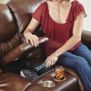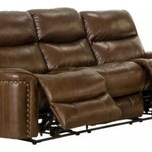 Comfort Coil Seating featuring Comfor-Gel Console Storage with Cupholders Individual Hand-Driven Brass Nails Power Button with USB Charging Port Steel…