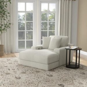 Chunky Chenille Fabric Coil Spring Seating Cuddler Cushion for Ultimate Comfort Steel Tech Framing Tonal Accent Pillows USB/USBC Port