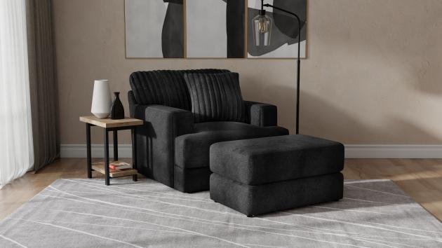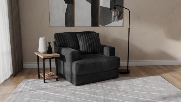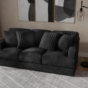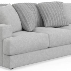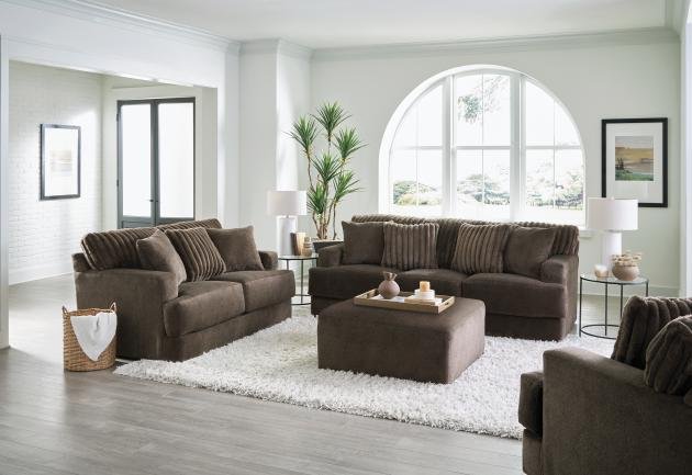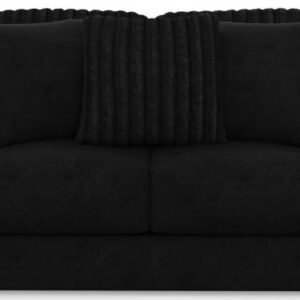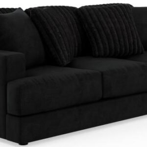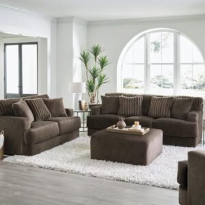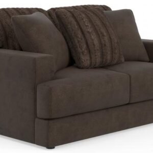 Comfort Coil Seating featuring Comfor-Gel Contemporary T-Front Design Cuddler Cushion for Ultimate Comfort Soft Durable Fabric Combination featuring Fur Stripe & Correlating Plush Pillows Steel Tech Framing
