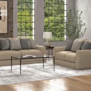 Coil Spring Seating Cuddler Cushion for Ultimate Comfort Grey/Brown Color Mix Polyester Pincord Fabric Steel Tech Framing Tribal Inspired Pillow Designs