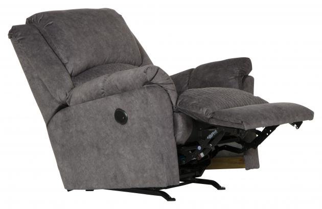 This comfortable Malloy Power Rocker Recliner is the perfect seating for any room in your home. It features a plush pub-style back and pad-over-chaise with decorative quilted lumbar and seat front. It has pillow arms and padded footrest.