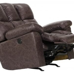 You will love relaxing in the comfortable Mayfield glider recliner. This recliner comes in faux leather upholstery and features a stitched waffle style back, pad-over-chaise with padded footrest, and pillow arms.