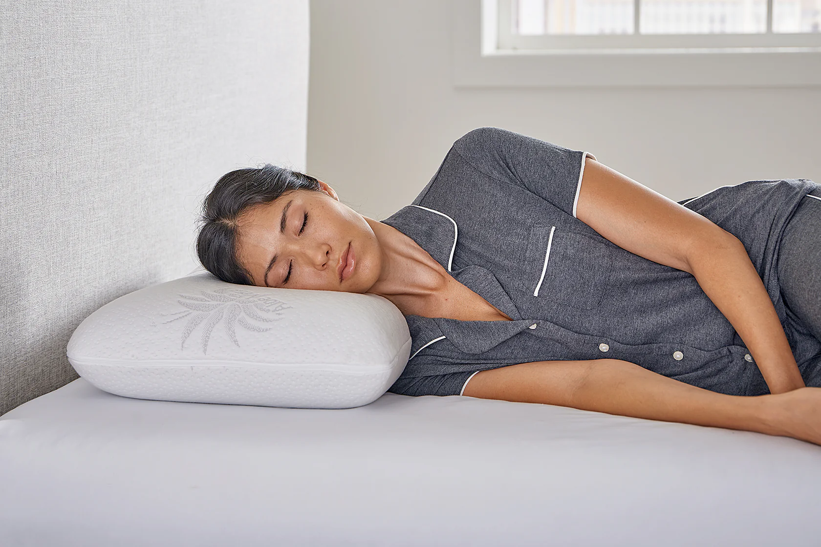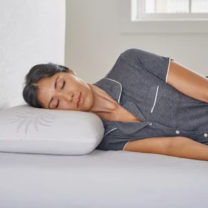 This pillow has been a consistent bestseller since it launched over five years ago. It is highly versatile, with the straight side providing a more traditional pillow experience for back and stomach sleepers while the contoured side hugs the shoulders for side sleeping. The core is made up of premium Ventilated Bamboo Charcoal Memory Foam to improve breathability.