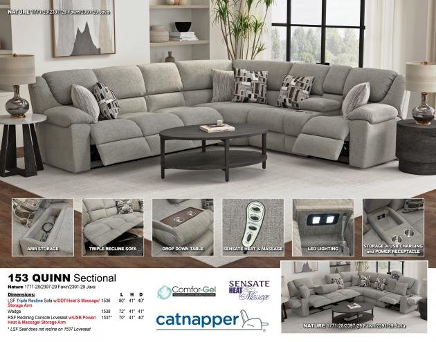 Comfort Coil Seating featuring Comfor-Gel Console w/USB and Power Sensate Heat/Massage Steel Seat Box Storage Arms Triple Recline w/Drop Down Table