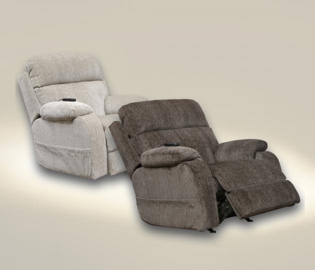 Utmost relaxation is easily found with this beautiful Refresher Power Recliner with wall recline. You will love the power reclining, power headrest with lumbar feature, heat, and therapeutic massage. It features a large padded back, a pad-over-chaise with padded footrest, and plush pillow arms. It is easily controlled with a power-button health and wellness station control.