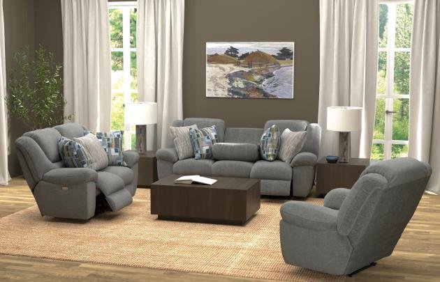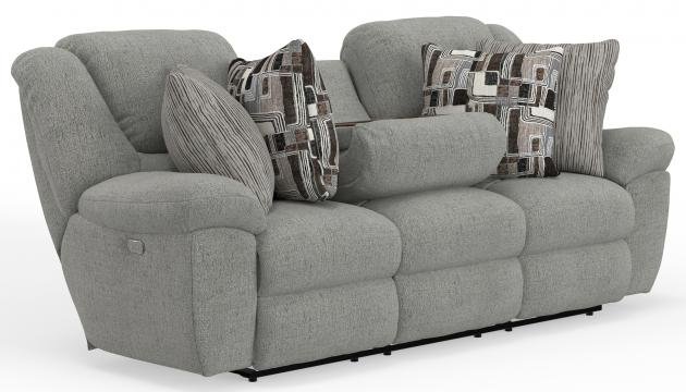 Comfort Coil Seating featuring Comfor-Gel Correlating Toss Pillows Standard Low-Pile Chenille Fabric Power Option Available Sofa w/Drop Down Table and Triple Reclining Feature Steel Seat Box
