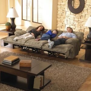 Ultimate Comfort and Function with Triple Recliner, Drop Down Table with Cupholders